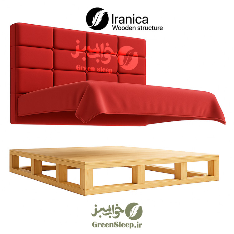 تختخواب باکس هتلی ثابت ایرانیکا (اقتصادی) سایز 140 دو نفره به همراه تاج طرح مستطیل