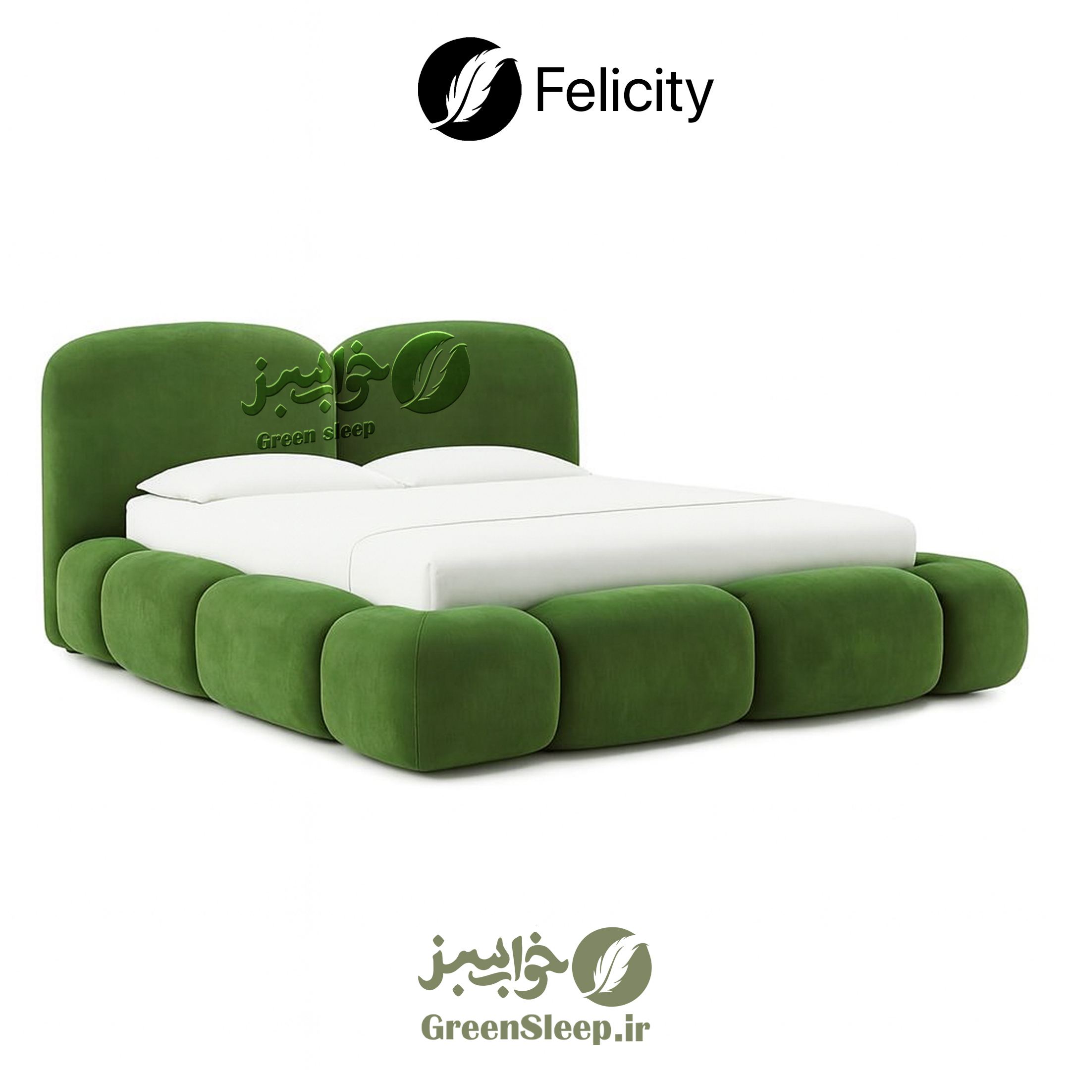 تخت خواب طرح تدی مدل فلیسیتی سبز سایز 160 در 200