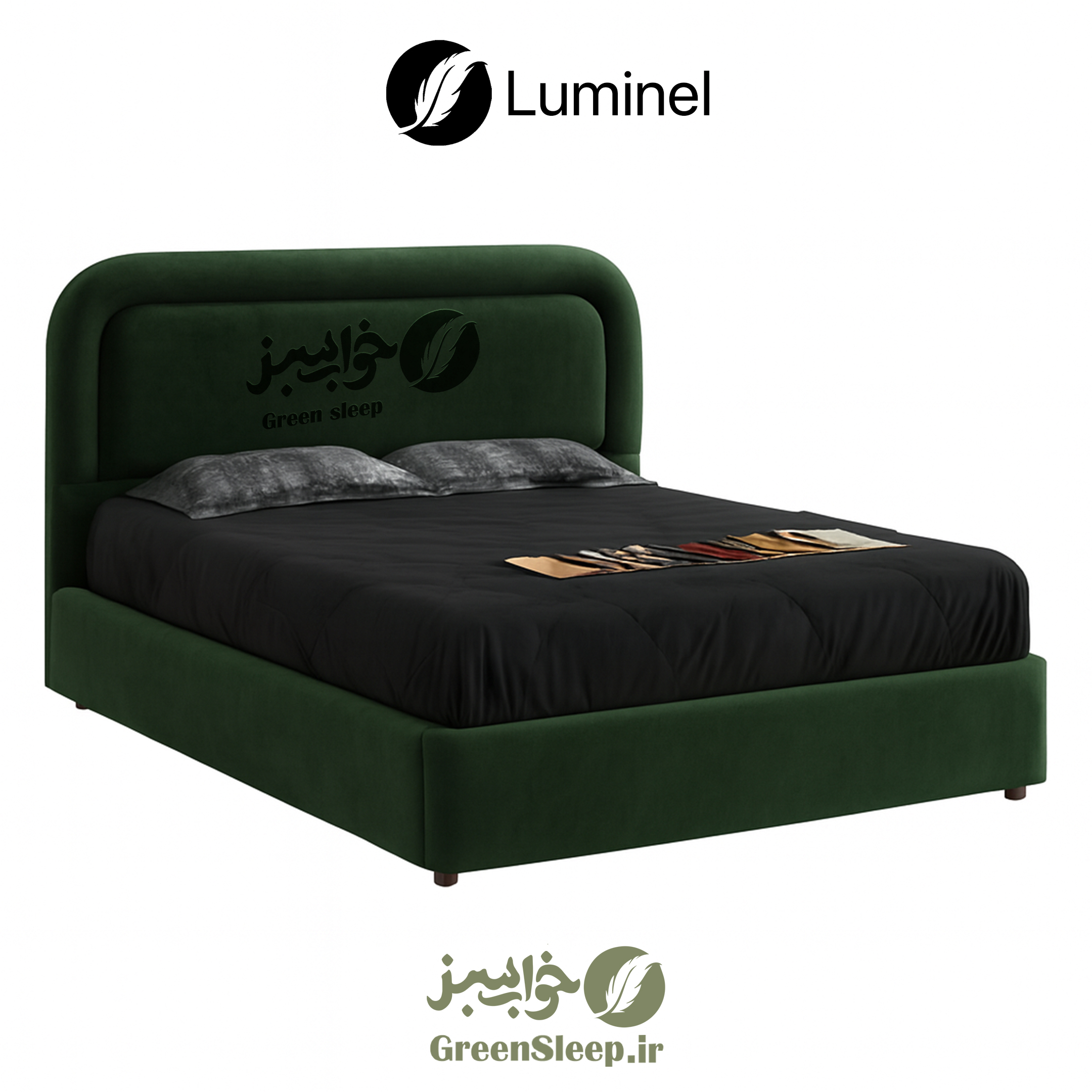 تخت خواب طرح لمسه مدل لومینل رنگ سبز سایز 120 در 200 سانتی متر